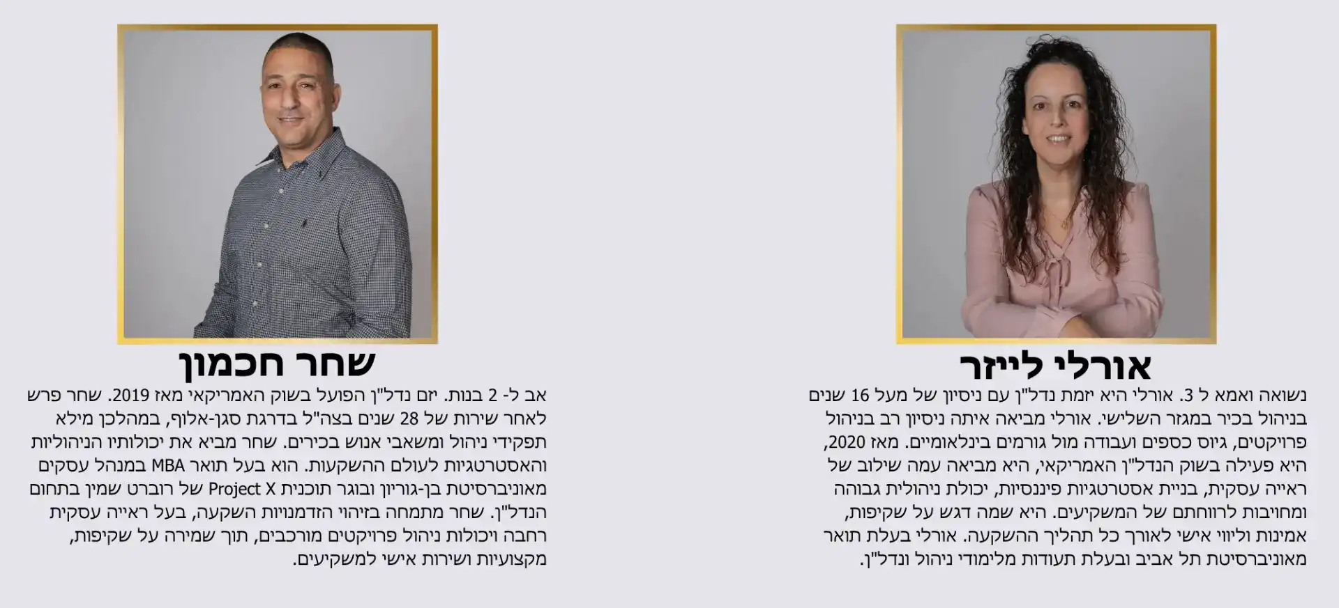 אנחנו מאמינים כי כל משקיע – מתחיל או מנוסה – יכול לייצר הכנסה משמעותית ובטוחה מהשקעות נדל"ן נכונות. המטרה שלנו היא להנגיש את עולם הנדל"ן בארה"ב, לבנות תהליכים ברורים ולהעניק תמיכה מלאה בכל שלב. אנו פועלים מתוך מחויבות להצלחת הלקוח: בזיהוי עסקאות אטרקטיביות, ביצוע השבחות איכותיות ובנייה מדויקת, ניהול חכם, והובלה לתשואות גבוהות. כל פרויקט שלנו נבנה מתוך תכנון אסטרטגי ותשומת לב לפרטים הקטנים – כי אצלנו, כל נכס הוא הזדמנות אמיתית.